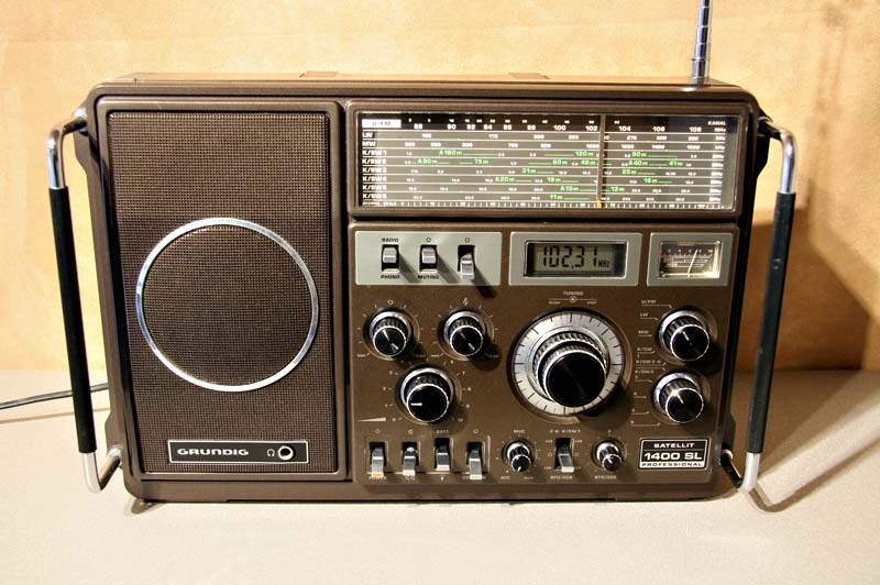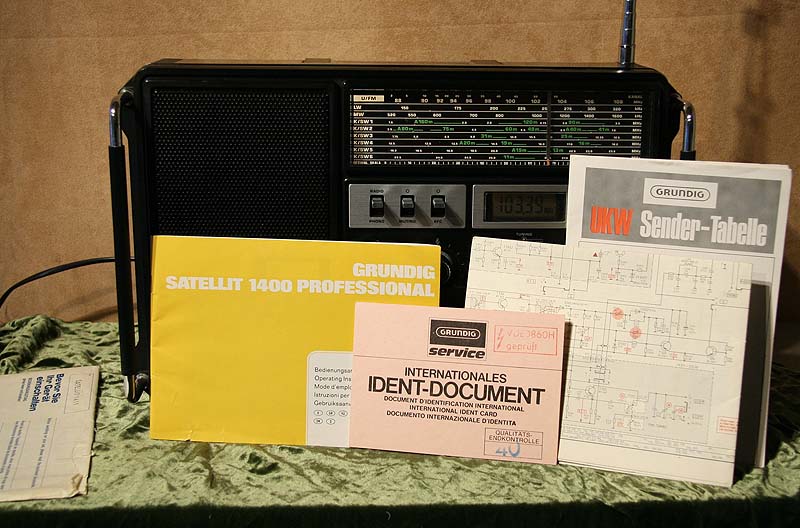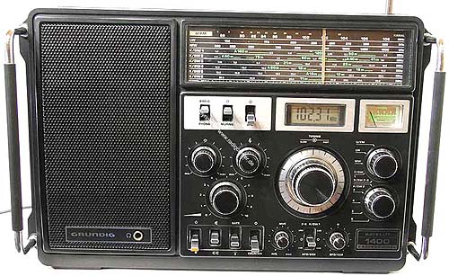 Grundig Satellit 1400 (Also built 1979-1982) The Grundig Satellit 1400 is basically similar to the Grundig Satellit 2400, but only available in mono which allowed for the smaller housing. Grundig Satellit 1400ebenfalls gebaut zwischen 1979 - 1982. Der Grundig Satellit 1400 entspricht im wesentlichen technisch dem Grundig Satellit 2400. Da dieses Radio aber nur für Mono ausgelegt ist konnte das Gehäuse kleiner ausfallen.
