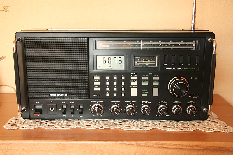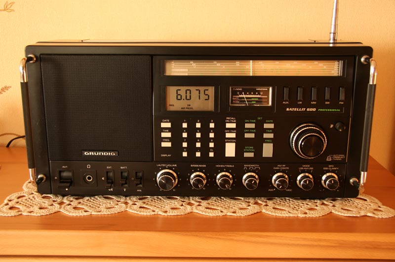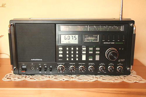 Grundig Satellit 600 Built concurrently to the Satellit 300 and the follow-up model to the Satellit 3400 Grundig announced the Grundig Satellit 600. Again Grundig started from the ground up with this model with all new developments. One could now simply enter the desired frequency via 10 key,and a motordriven preset were some of the most noteworthy innovations that provided the fabled superb reception that Grundig was now famous for. This magnificent radio weighed 9Kg (18 lbs) and set it's buyer back a king's ransom or DM 1400.00 (around $700.00 at that time). With this model also carried on the large volume sound of Grundig.